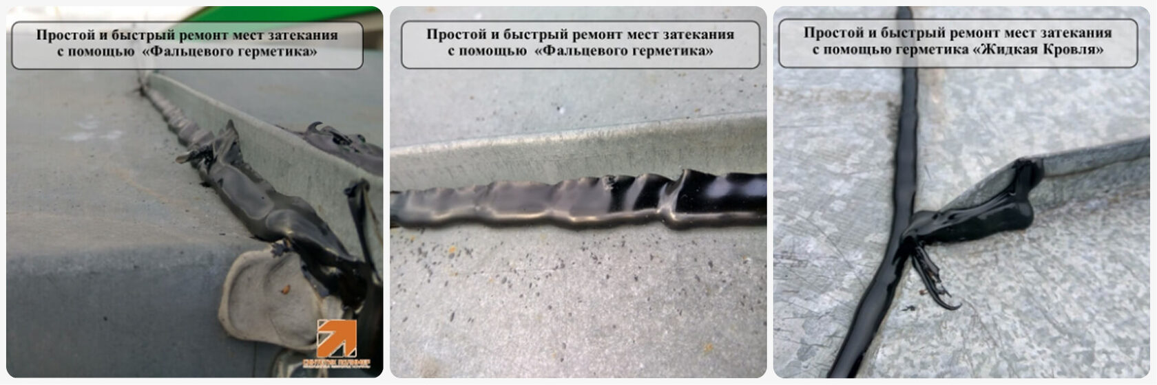 Герметики удобно использовать при гидроизоляции крупных щелей — вводов коммуникаций, примыканий металлической кровли к вент. каналам и парапетам и т. д